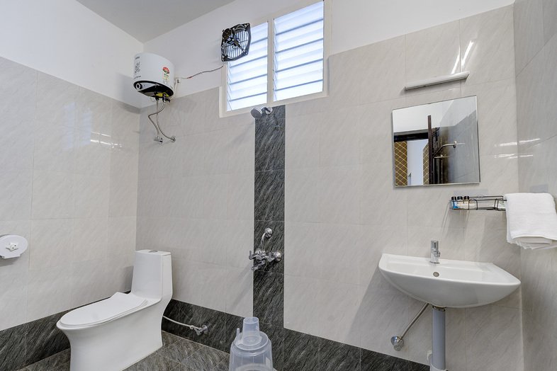 Spacious Air Conditioned Apartments with a Common room, a King Size Bed, a Dining space with a table, and an attached Kitchenette. This studio apartment has a bathroom and a walk-in shower with complimentary toiletries. The Kitchenette has a Microwave Oven, Induction, Kettle, Toaster, Refrigerator, Kitchenware, and Aqua Guard water purifier.